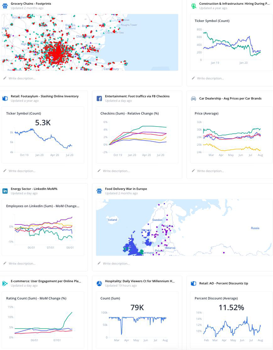As economic activity comes online, new data trails are left behind. The most innovative investors leverage this data for alpha-generating insights. The following use cases illustrate how Thinknum’s alternative datasets power investment decisions across UK companies.