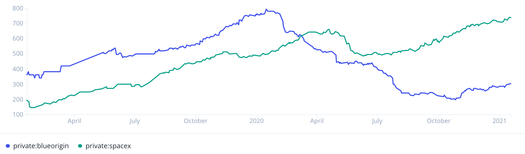 To proxy for employee headcount, use the aggregated number of LinkedIn profiles that list a company as their employer. Compare competitors’ headcount, or track corporate expansion and layoffs, all in real time.