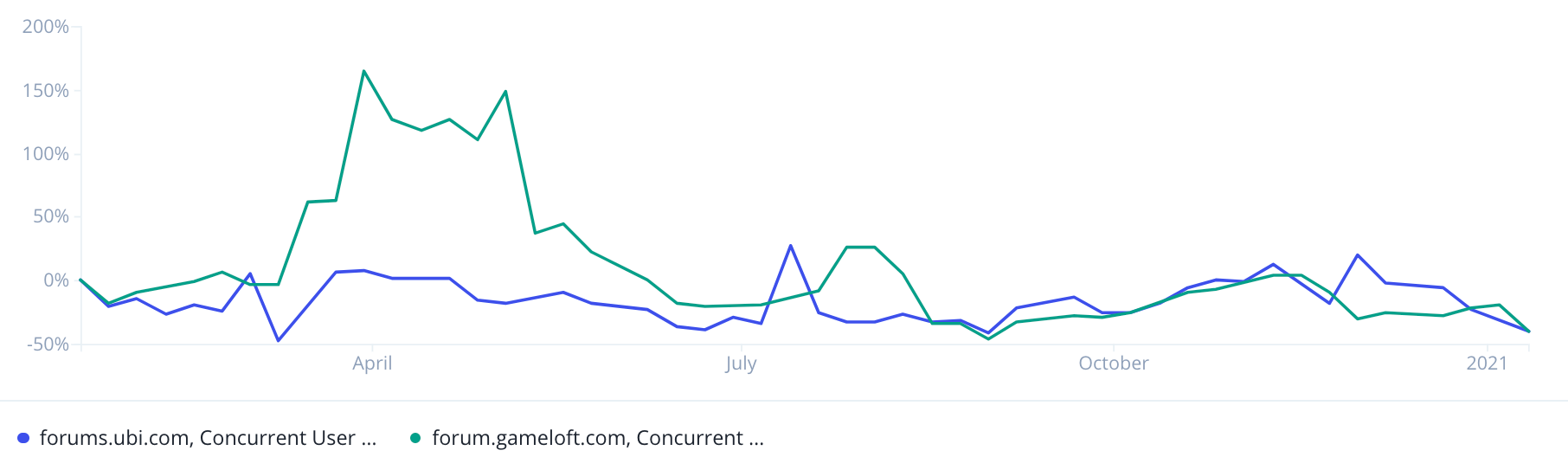 Thinknum’s Traction dataset is comprised of publicly available metrics harnessed from corporate websites. It tracks user activity for Ubisoft and Gameloft by indexing the number of concurrent users, giving consultants a real-time view of who’s winning in the video game industry.