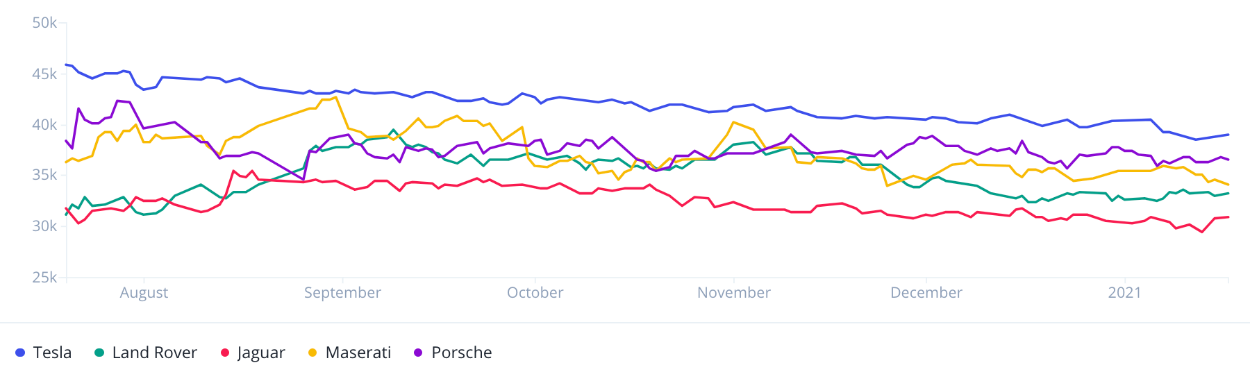Our car inventory dataset tracks the daily inventories of all major online dealerships through each vehicle’s unique VIN identification number. Users can filter by brand, year, car model, location and other attributes to predict car sales in real time.